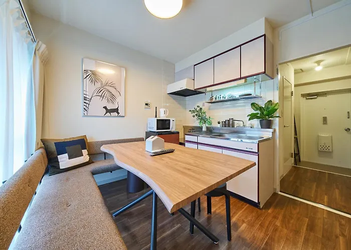 This apartment is located approximately a 5-minute walk from Shin-Okubo train station and a few moments from the Kaichu Inari Shrine. Cherry blossom viewing spots is 2.3 km from the apartment. The Shin Okubo Korean Town is also a mere 8 minutes' walk away.